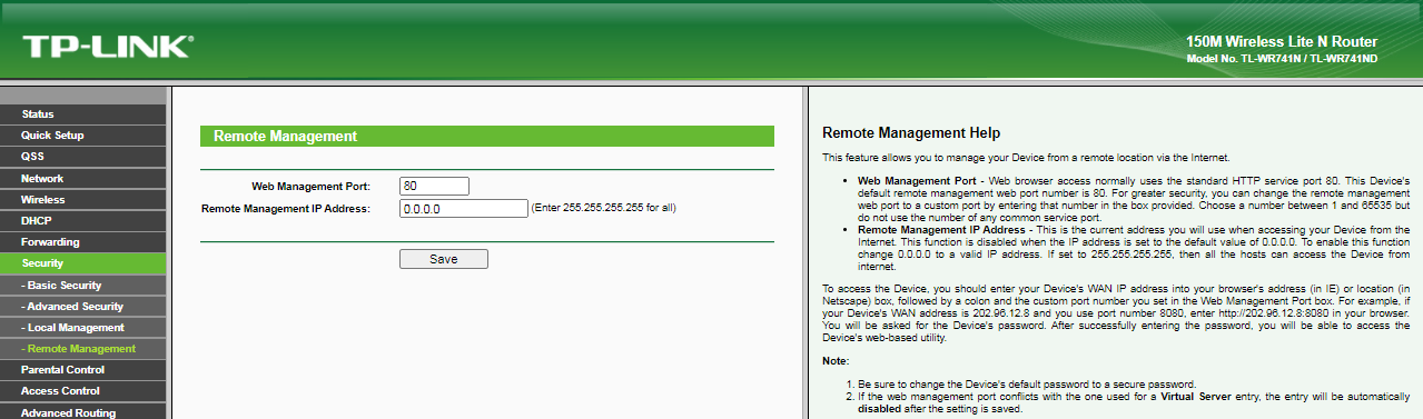 Ja bych tedy rekl, ze se tam zadava IP, ze ktere to chces spravovat. Je to prave kvuli zminovane bezpecnosti.shockwave píše:ktere wan ip pouzit do tabulky Remote management v routeru.