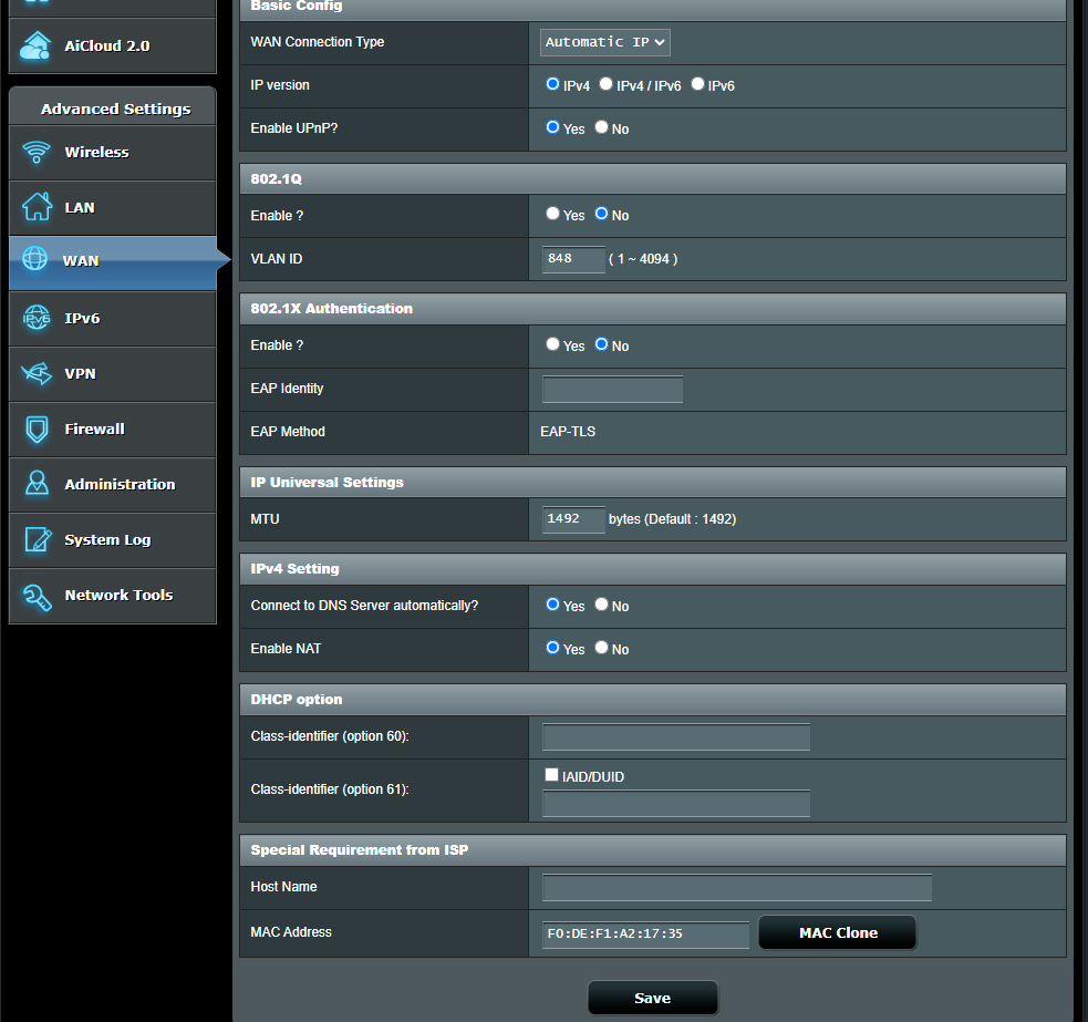 V routeru ASUS DSL N66U jsem v nastavení nic neměnil už nějaký čas. Aktuální možný firmware. Zapojeno na WAN. U providera prý problém není, nemá žádné výpadky nebo problémy. Restart pomůže jen na krátký čas. Dříve jsem takové problémy neměl.