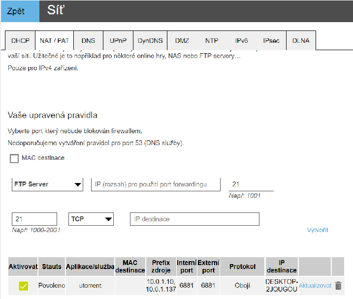 petr22 píše:Port forwarding smeruje porty mezi koncovym zarizenim (tzn router, modem) a zarizenim ve vnitrni siti.