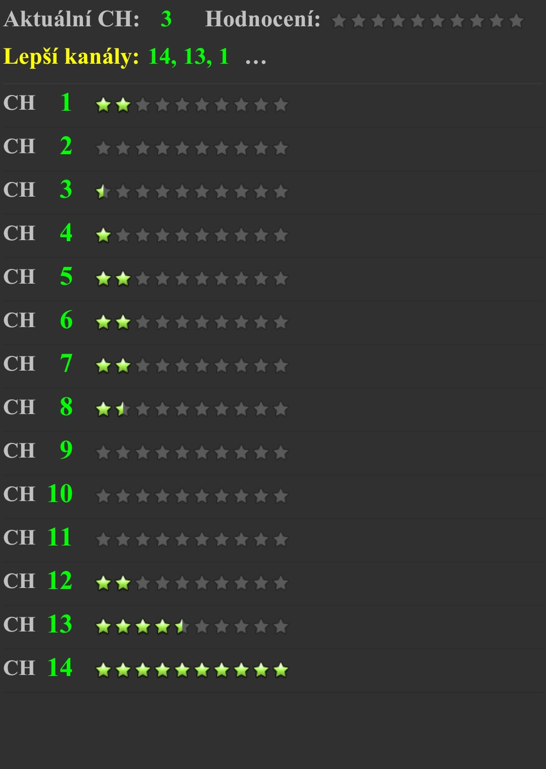Na mobil je spousta aplikaci ktera ti ukaze nejvhodnejsi kanal na zaklade anaylyzy toho co na kterem vysila.