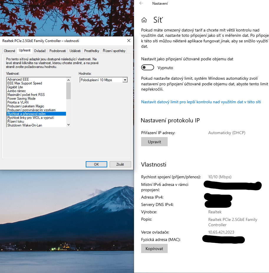 Když nastavím 10/10 (Mbps), tak mi to ve vlastnostech změní