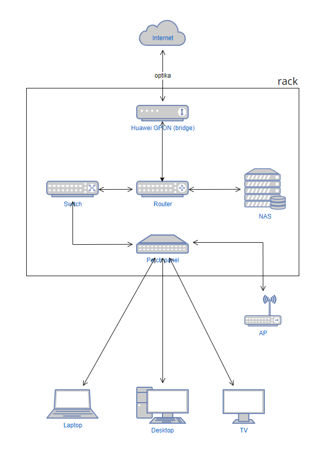 Mám ještě hloupý dotaz k vedení kabelů, jelikož mi to není úplně jasné. Od Huawei bridge od ISP musím dovést kabel do WAN portu routeru a od něj z jednoho jeho LAN portu dalším kabelem zpět do switche, který budu mít na chodbě? Tudíž dvěma kabely nebo lze kabel od ISP vést rovnou do switche a ten k routeru připojit pouze jedním kabelem do WAN?