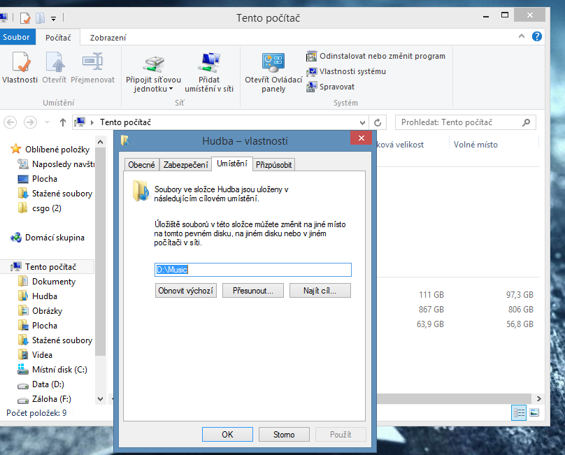 Před časem mi jeden ajťák na počítači nastavil, že všechny soubory uložené v knihovnách se ve skutečnosti ukládají na disk (D:). Nyní mám počítač nový (s windows