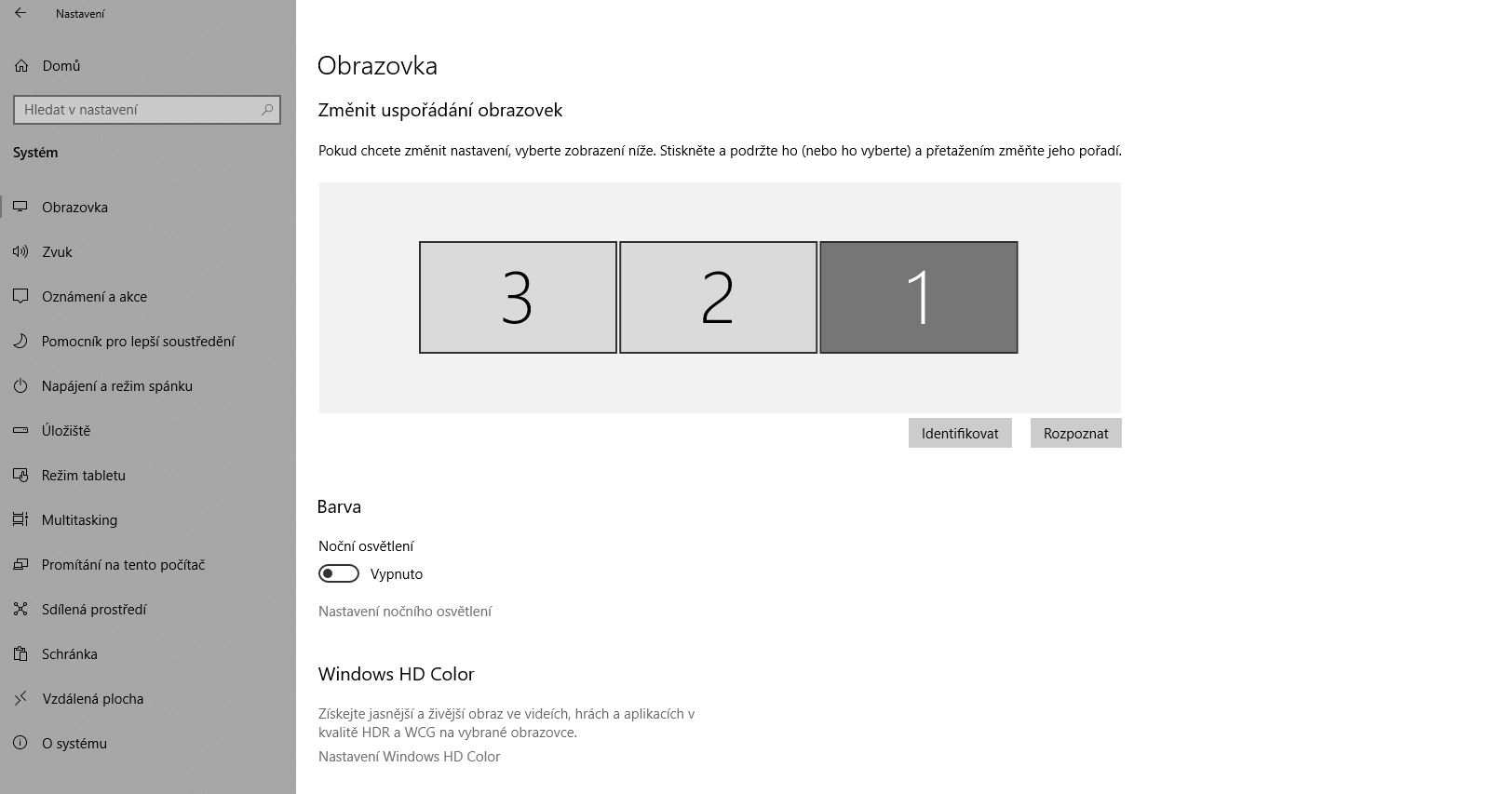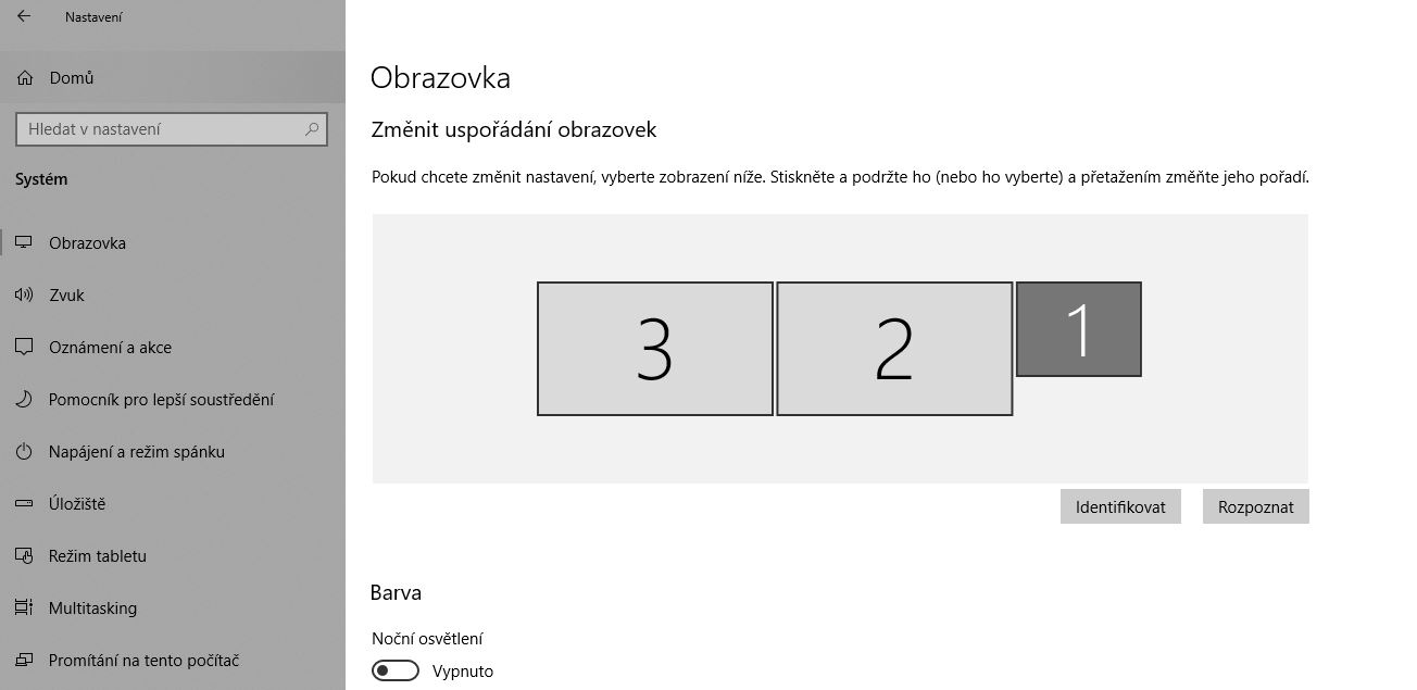 Zapojil jsem 2 monitory do 2x DVI a televizi do HDMI. Počítač rozpoznal všechny tři obrazovky a dal mi na výběr jestli chci klonovat rozšířit na všechny tři, nebo používat nějakou kombinaci 1a3 nebo 2a3 Po kliknutí na určitou obrazovku mi dal na výběr odpojit tuto obrazovku (to je to co jsem chtěl, když budu požívat jen pc tak odpojím v menu televizi a když si pak budu chtít pustit film na tv tak ji jen připojím a naklonuji nebo rozšířím) Při odpojení obrazovky se obrazovka v menu zmenší viz obrázek No a nakonec jsem ještě potřeboval vyřešit problém se zvukem. Chtěl jsem aby při používání pc hrály bedničky co budou u monitorů a při přehrávání filmu na tv aby hrála tv. Toto nastavení jsem našel v nastavení zvuku, kde mám možnost vybrat mezi reproduktory a TV. Takže za mě to funguje přesně jak jsem chtěl, Když budu sedět u pc v jiném pokoji odpojím tv a budu fungovat na pc a když si budu chtít na tv přehrát film jen ji připojím a přepnu zvuk. Ještě jsem si vymyslel že si natáhnu usb od pc to vedlejší místnosti pod tv dám do něj příjímač na klávesnici a myš a budu moct ovládat pc i když budu sedět před tv