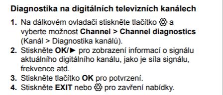 Podle návodu lze zjistit kvalitu signálu, který je na výstupu antény k dispozici: