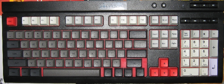 Vzhledem k tomu že mi nevyhovovaly tlačítka na K68 barvou, svým povrchem a náhodou jsem objevil sadu keycaps od HK Gaming za 300 korun, řekl jsem si že je správný čas na jejich výměnu. Sada bohužel nebyla kompletní, nicméně žádná důležitá klávesa nechyběla. Horší to bylo s mezerníkem který měl nekompatibilní rozteč „děr“ pro boční stabilizátory, nicméně to se vyřešilo obětováním dvou přebytečných kláves a za oběť padlo i jedno sekundové lepidlo.