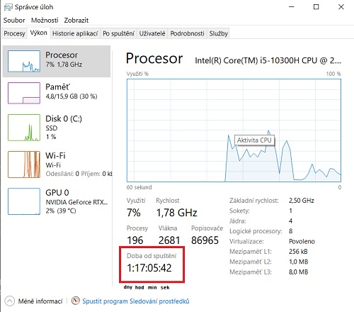Re: Několik otázek k notebooku: Procesor -- Doba od spuštění