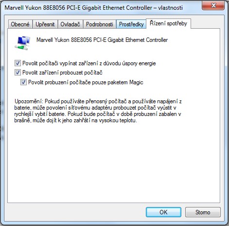 Správce zařízení -> Síťové adaptéry -> Tvoje síťová karta -> Řízení spotřeby