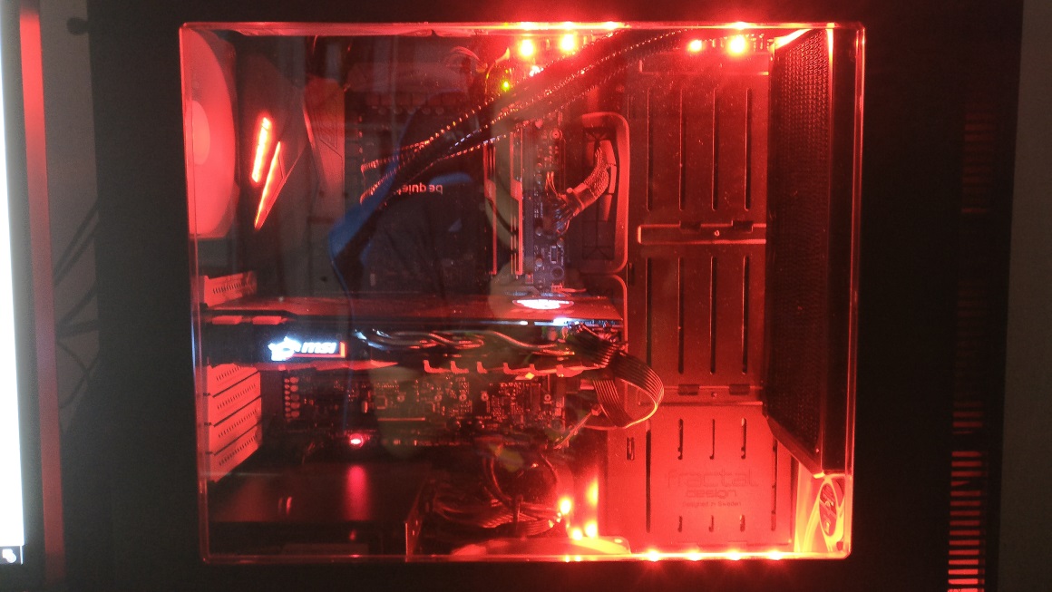 Fractal Design Define R6 TG (6x Noctua A14 ULN) - Intel Core i9-9900K @ 4,9GHz (Noctua D15S) - ASUS Z370 MAXIMUS X APEX - 16GB G.Skill Trident Z DDR4 4000Mhz - MSI GTX 1080 Ti Lightning Z 11GB (ACEX IV + 3x Noctua A9 PWM) - Samsung 960 PRO 512GB + ADATA SX8200 PRO 2TB + Samsung SpinPoint M9T 2TB - Corsair RM650X - 27" LG 27GL850 @ 144Hz + 24" DELL P2419H