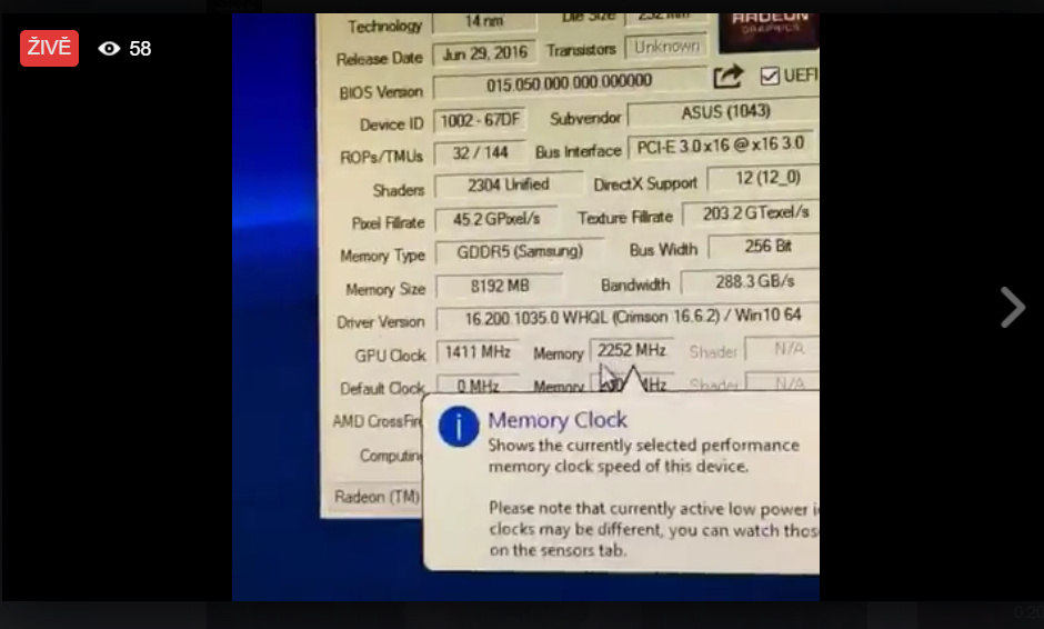 Flankerovi se na streamu podařilo přetaktovat RX 480 minimálně na 1411 MHz, stabilně.