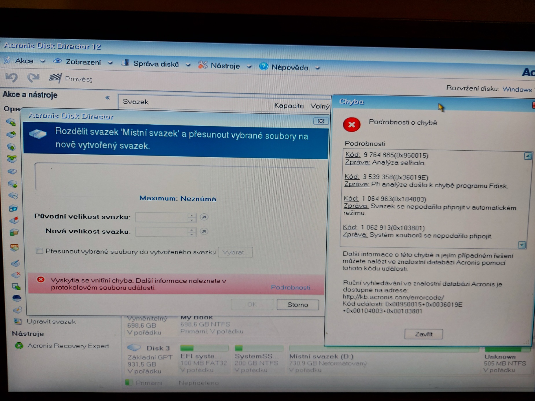 Když ale dám v acronisu připojit svazek, píše, že svazek nelze procházet, chyba v systému souborů. Acronis recivery expert také nevidí nic k opravě.