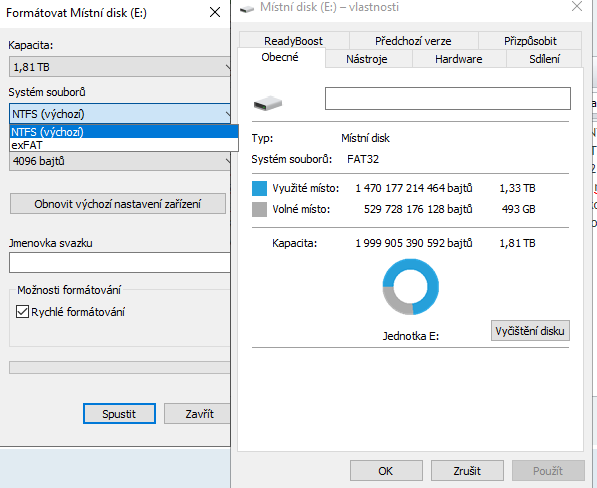 Dobrý den potřebovala bych pomoct. Snažím se konvertovat externí disk Verbatim bez ztráty dat. Disk byl původně NTFS ale asi po roce používání jsem narazila na problém s přetáhnutím souboru a zjistila jsem že je najednou disk ve formátu FAT32. Tak jsem zkusila v příkazovém řádku požít convert E: /fs:ntfs a to mi vyhodilo tuhle chybu: Error converting file SETUP~2.BIN. The file may be damaged or there may be insufficient disk space. Error converting directory TYRWHITT~3. The directory may be damaged or there may be insufficient disk space. The conversion failed. E: was not converted to NTFS tak jsem vyzkoušela chkdsk /F to mi údajně opravilo poškozené soubory. Tak jsem to zkusila znova přes cmd a furt ta stejná chyba. Soubor SETUP~2.BIN jsem na disku nenašla a ani to druhé TYRWHITT~3. Do přílohy posílám obrázky.