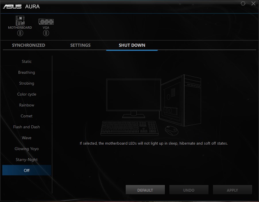 U desek Asus v BIOSe volba klávesou F4- Aura- nastav off
