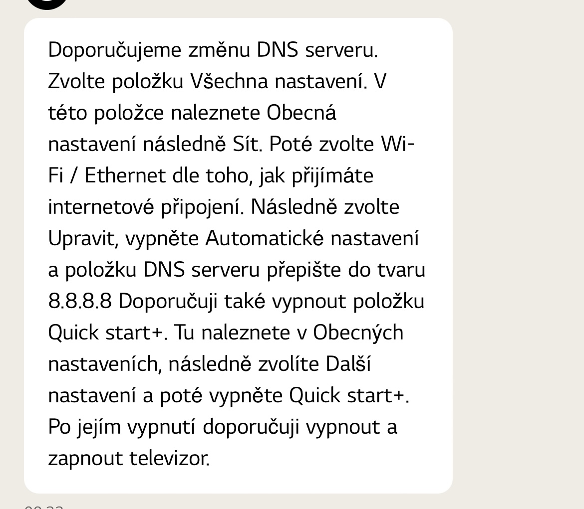 Zkusila jsem vymazat cookies a data v prohlížeči co tam je nainstalovaný, ale nepomohlo. I jsem dala Tv do továrního nastavení, ale taky nepomohlo. Tv je připojena přes LAN. Zkoušela jsem to napojit i na muj hotspot z mobilu, ale také žádná změna. Celkově je tv taková zpomalená na tom internetu. Vše se strašne dlouho načítá. Např. spustim seznam.cz tak nic nejde, musim počkat až jakovy přepne obraz a např. email se dá zleva doprava. Snad mě chápete. Prosím poradí někdo? Děkuji