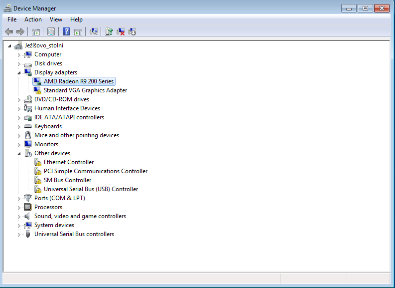 Chybí Ti ovladač LAN (Ethernet Controller) a pak ještě další (ty vykřičníky).