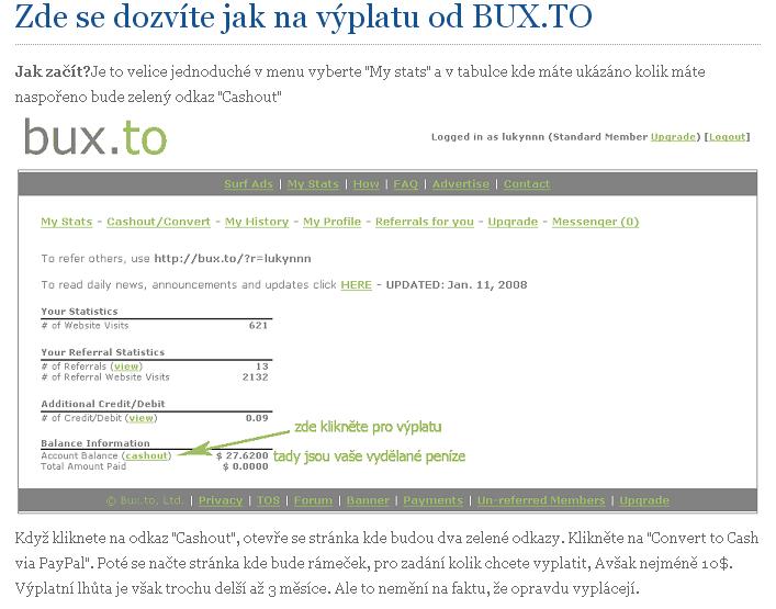 klikačky (placení za kliky na reklamy) je na h***o. kašli na to. zbytečná ztráta času. ty výdělky jsou směšné. na Bux.To je výplata až od 10$. přečti si pravidla bux.to. taky jsem si v tom frčel,ale časem příjdeš na to, že to je jen promrhaný čas