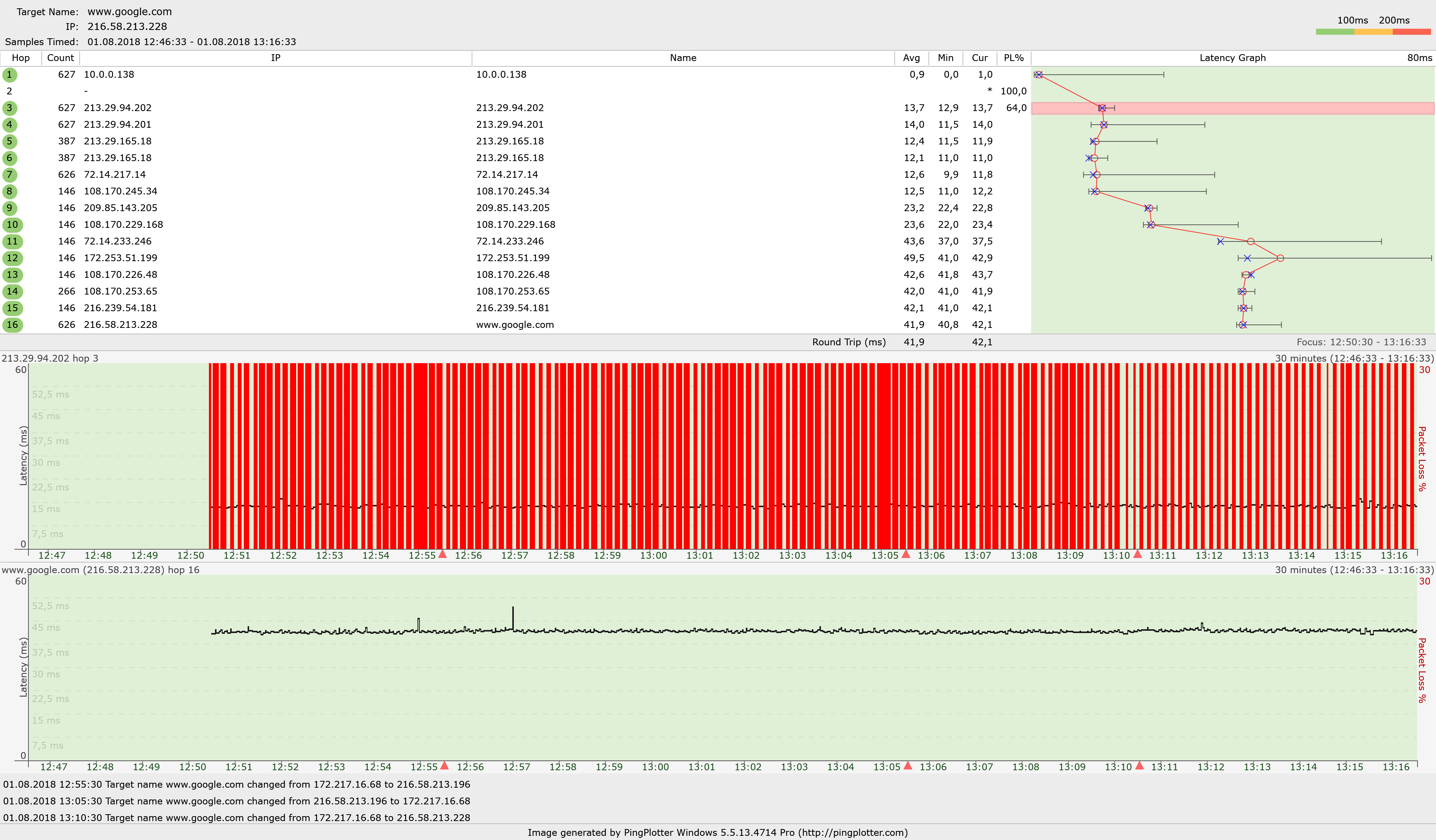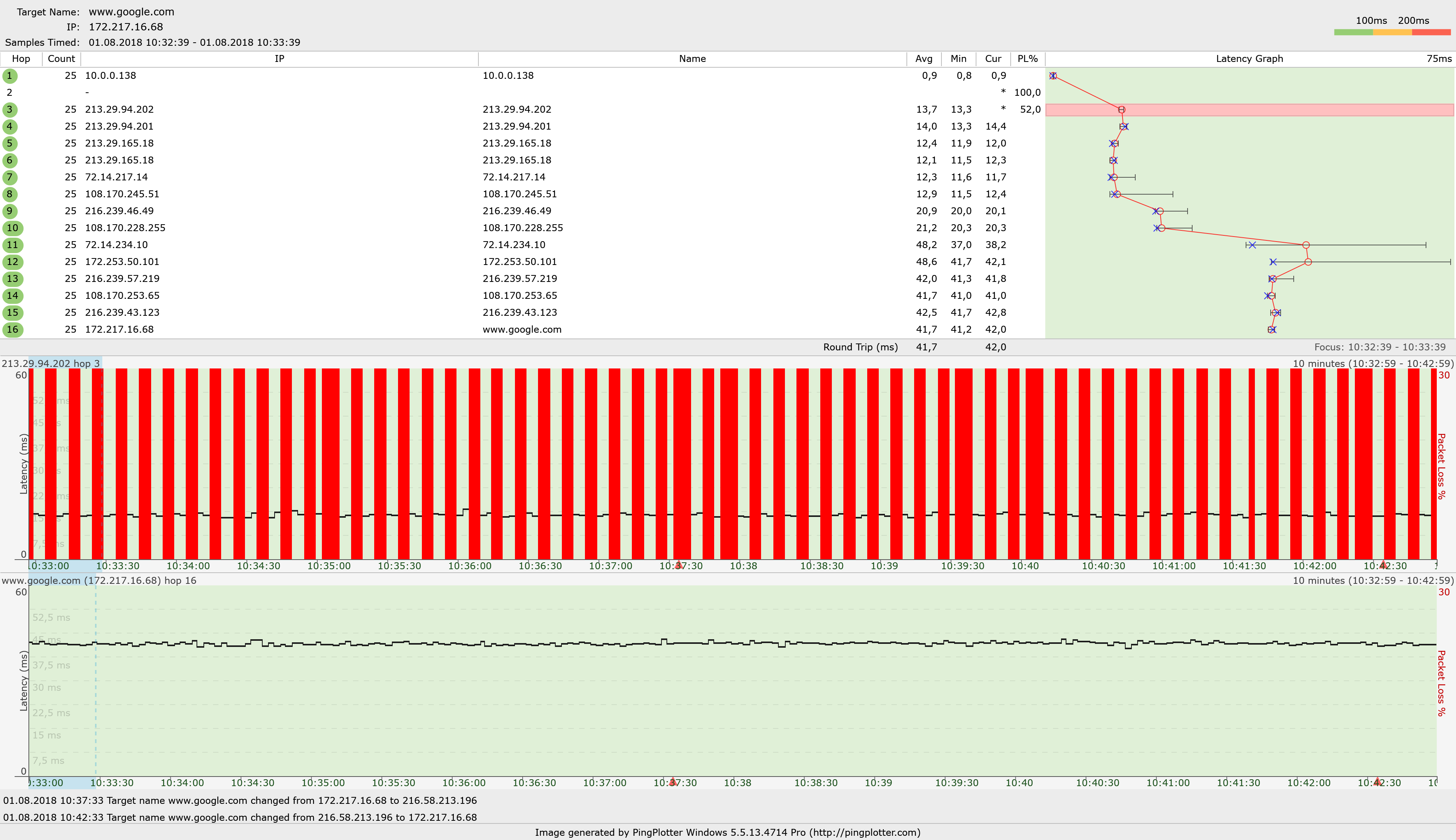V PingPlotter jsem zadal target "ipv4:www.google.com" A výsledek vypadá stejně.