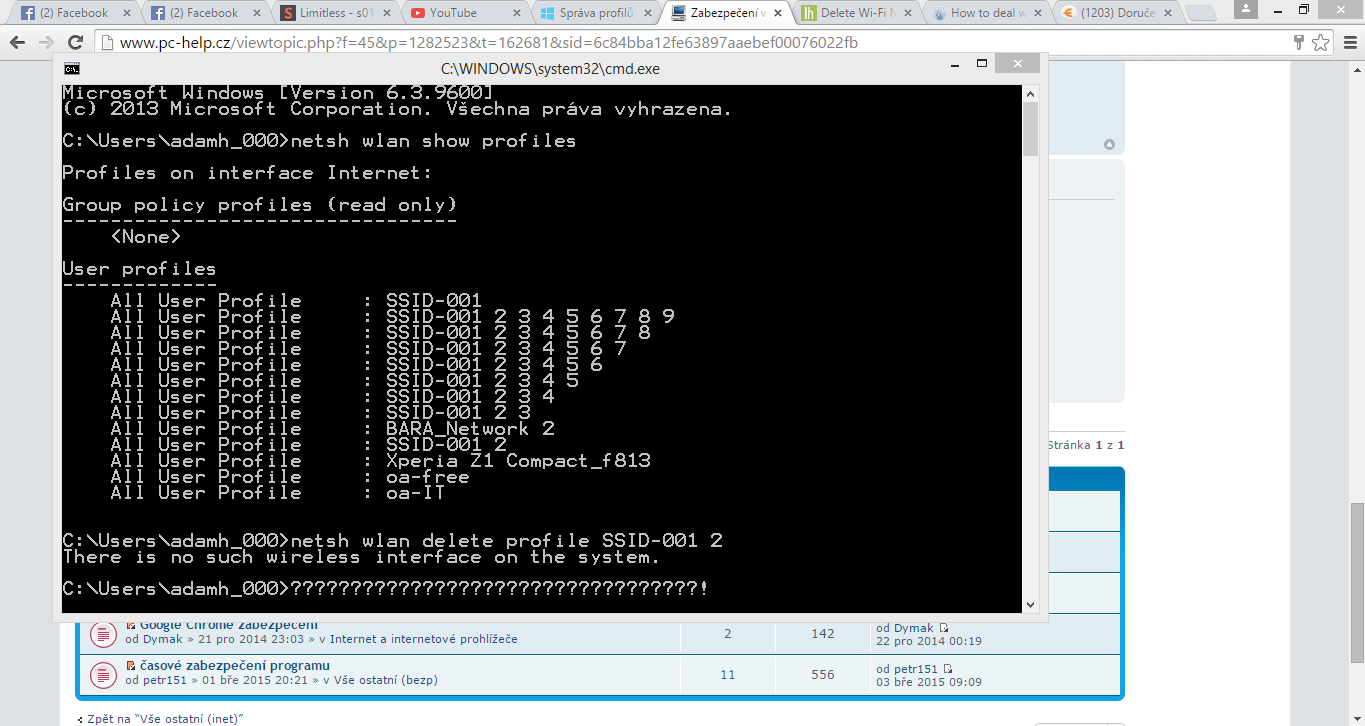 Potřebuju smazat všechny ty SSID-001 -------- jenže to nejde, ani ten Bara_Network 2. Myslím, že to je tím, že tam je mezera, mezi slovy a číslem, nevíte někdo jak postupovat? Jinak další profily bez mezer se smazali hned. Myslím, že jsem něco někde pokazil.