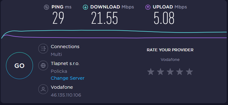 Stahování je víceméně většinu času stabilní, ale při hraní her jako jsou bf5, CoD MW, smite a podobně se potýkám s problémem vysokého pingu/latency přesto že internet žádné jiné zařízení nevyužívá. Lagy nejsou pravidelné.