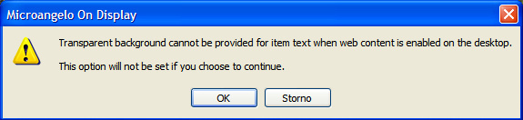 Pokud jsem té hlášce porozuměl, tak říká, ať vypneš aktivní plochu. Pokud jí nemáš zaplou z nabídky, je možné že ty jí nějaký vir, kterého ani už nemusíš mít v současné době, přepsal v registrech.