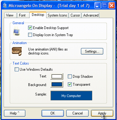 "Další položka, Písmo, je zaměřená pro práci s popiskami ikon. Můžete zde nastavit nejen jeho písmo a velikost, ale také pozadí, jež může být i průhledné."