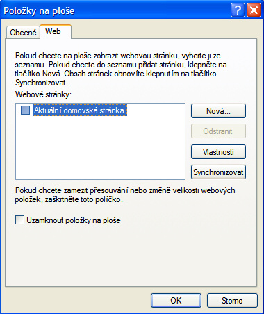 Pravý klik na plochu -> Vlastnosti -> Plocha -> Vlastní nastavení plochy -> Web