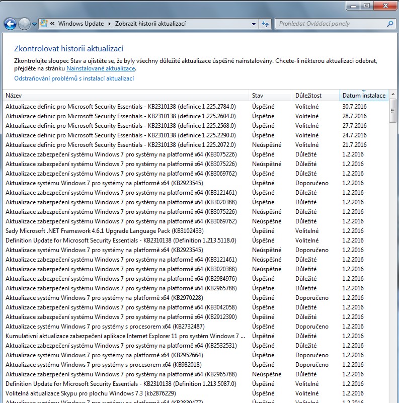 Se stala asi někde chybička, protože mi to nepřipsalo žádnou aktualizaci. Zkusil jsem to několikrát, ale stále stejné. Takže jsem zamrzl na nějaké staré atkualizaci, kdy byl počítač naposled v provozu 1.2.2016. Pokud zapnu aktualizace na kompu: Instalovat aktualizace automaticky, tak to stále hledá a přitom mi právě naskočí zase zpátky využití procesoru na min.50%.