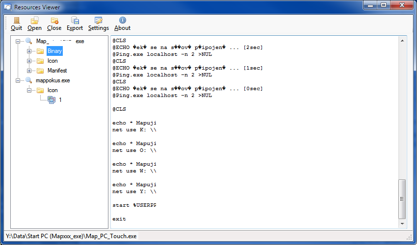 Dávám screen z resource viewer - nová verze kompilátoru (2.1.3) - soubor (Map.....exe) je ve vieweru normálně vidět a samozřejmě i hesla. Druhý soubor (mappokus.exe) se nezobrazí - kompilátor 1.4. Oba jsou od stejné firmy.