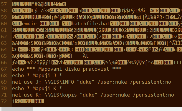 To co jsi nahral na leteckoupostu vytvori docasny .exe v %TEMP% pod nazvem b2b.exe. Na jehoz konci je toto: