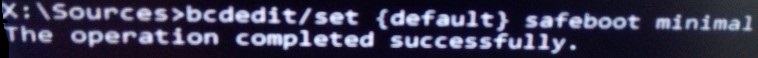 Použi príkaz : bcdedit /set {default} safeboot minimal ,viď screen .Zavri príkazový riadok a pokračuj Skončiť prejsť na Win10.