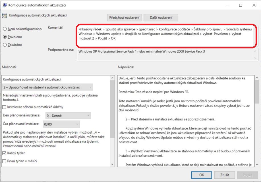 Windows 10 Automatické aktualizace (stáhnout, ale neinstalovat)