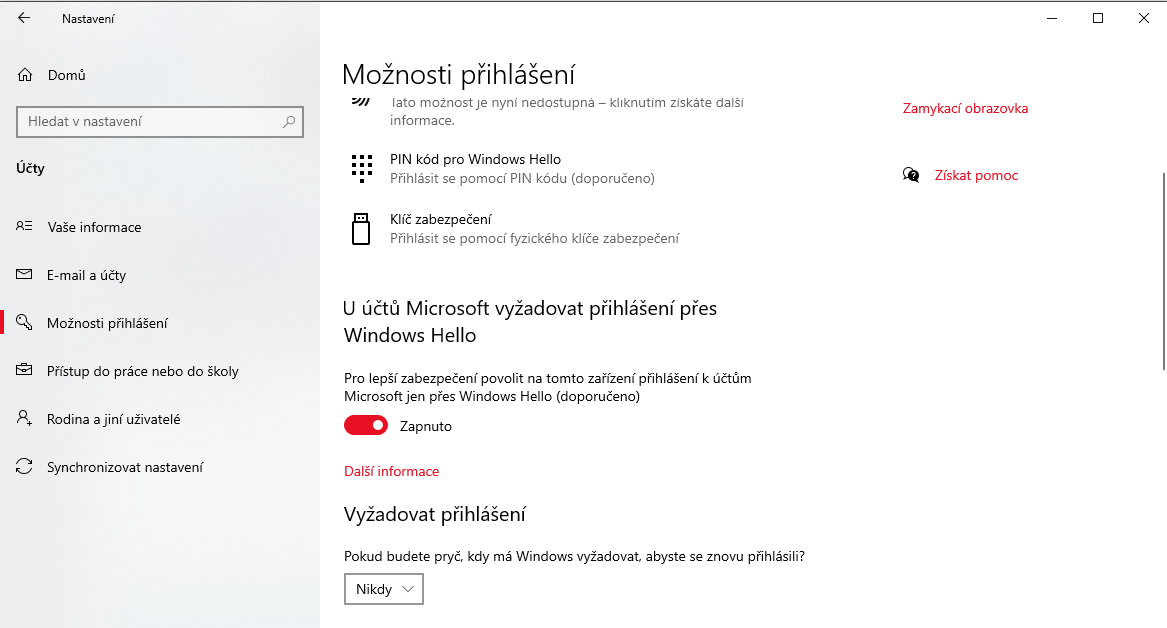 Takže nastavit heslo jak Windows 10 otravuje neustále a pak to "obejít" přes toto nastavení?