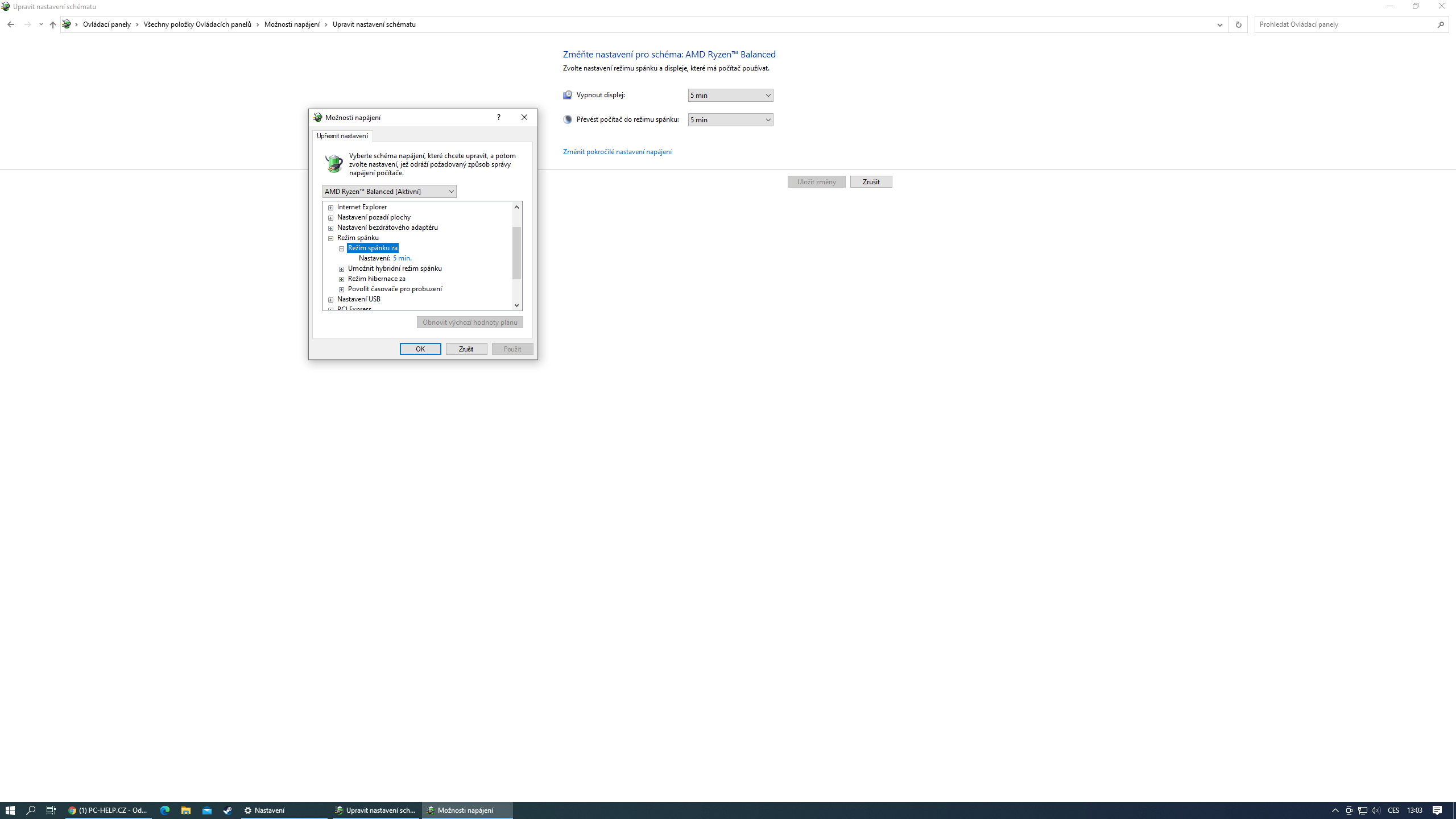 Re: počítač nepřechází do režimu spánku při neaktivitě