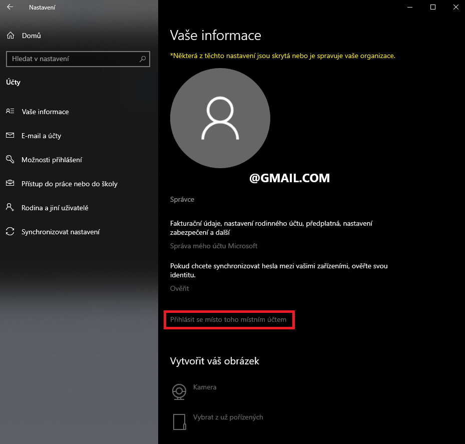 Re: Změna Microsoft účtu na lokální účet ve Windows 10