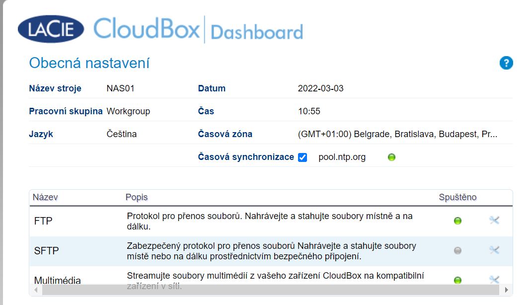 Jak jsem uvedl, název složky a uživatele je stejný. Radši přikládám i nastavení NASu (mimo nastavení sítě).
