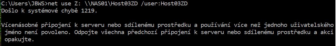 Doplneni hesla do prikazu ti nevyresi opetovnou hlasku s vicenasobnym pripojenim. To mezitim lezes na spolecnou slozku NASu pres pruzkumnika?