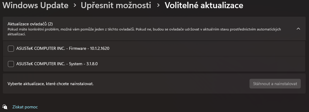 ASUSTeK COMPUTER INC aktualizace - nainstalovat?