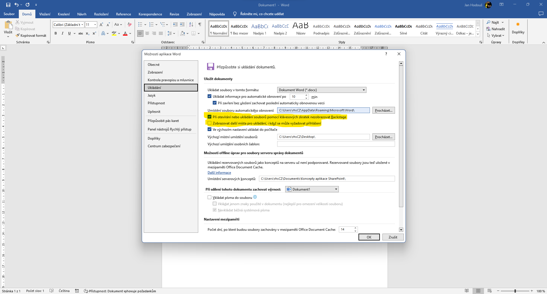 3. Word 2019 - jde vynechat ten mezikrok při ukládání a ukládat trvale jen na plochu?