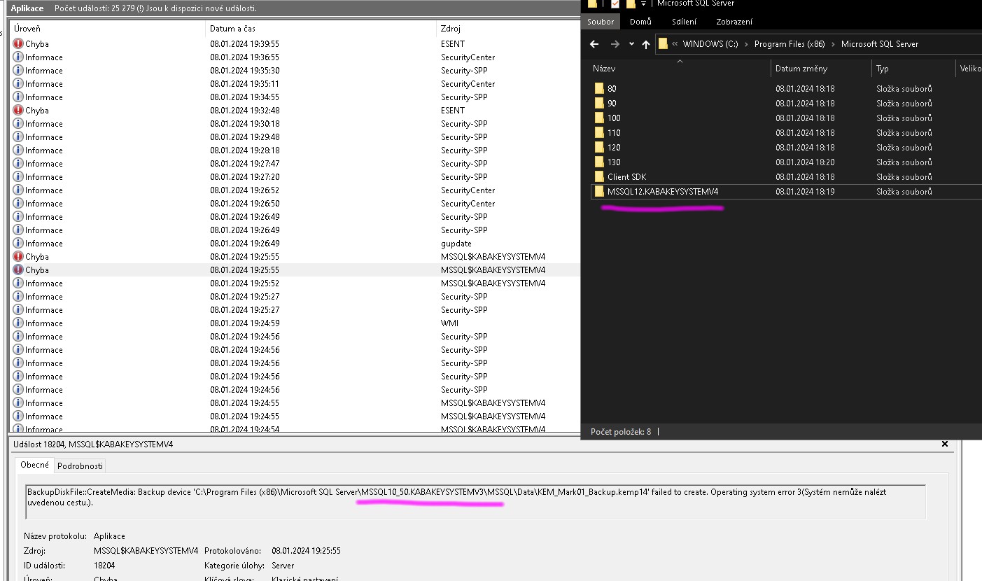 na Win 10 PRO používám aplikaci pracující na bázi SQL. Při uzavírání aplikace se to sekne a v protokolu událostí se objeví hláška, že nemohla být provedena záloha, chyba 3041.