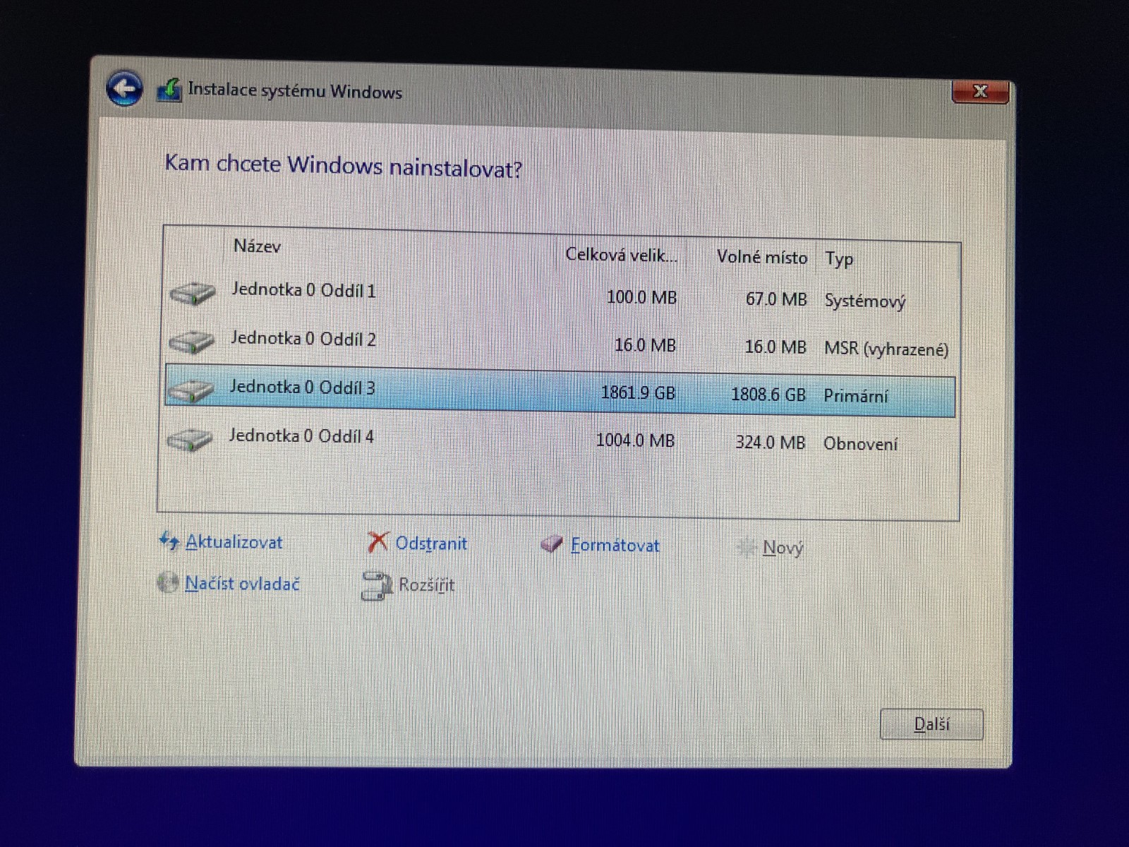 • Instalace Windows 11 - nevidím nový M.2 disk