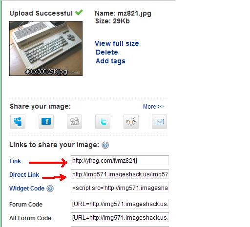 Pokud to tedy uploaduješ na ImageShack, tak sem potom musíš zkopírovat jeden z těchto dvou linků.