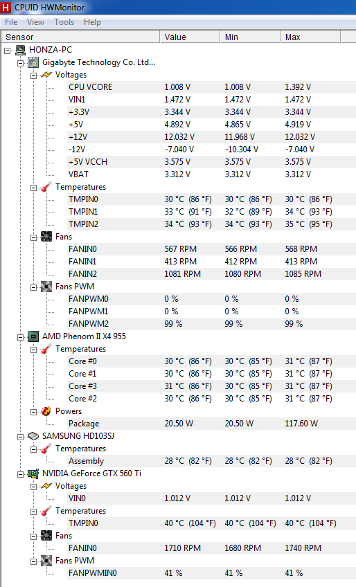 AMD PhenomII X4 955 BE 3,8 GHz / Gigabyte GA-880GA-UD3H / MSI N560GTX-Ti Twin Frozr II/OC / Kingston HyperX blu 4GB (kit 2x 2GB) 1600MHz CL9 / Gelid Solution Tranquillo / Samsung SpinPoint F3 3.5" 1TB / Seasonic S12II-620 (SS-620GB F3) 80Plus Bronze / Cooler Master HAF 922 W