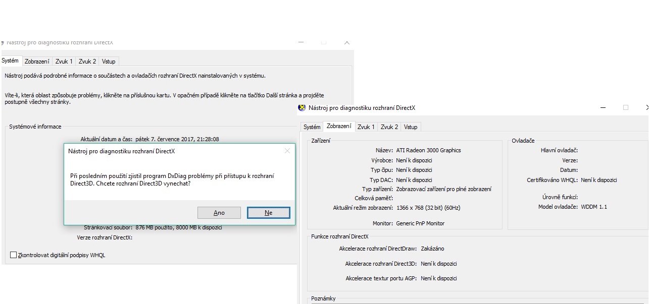 Ovladac na grafiku je sice od Microsoftu, ale je tam.