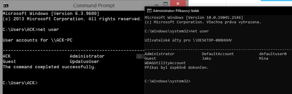 Pokud bys chtěl vypsat všechny účty s admin právy, byl by příkaz: "net localgroup administrators".