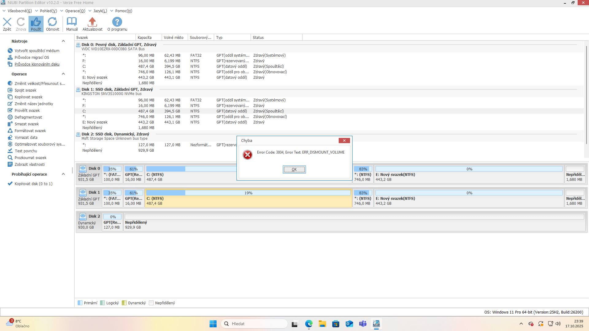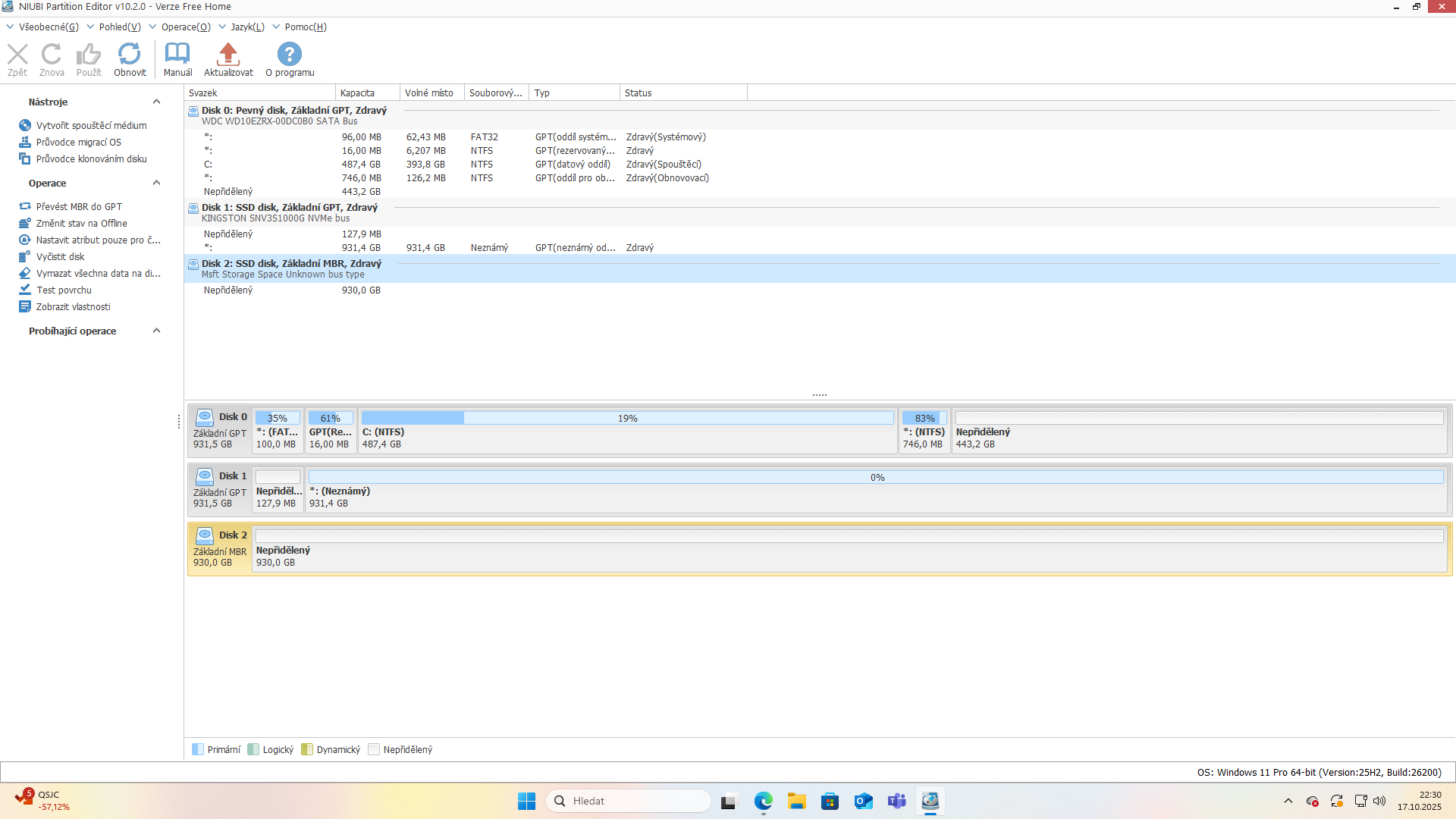 ten disk nula je WD se systémem a disk 1 je SSD KINGSTON
