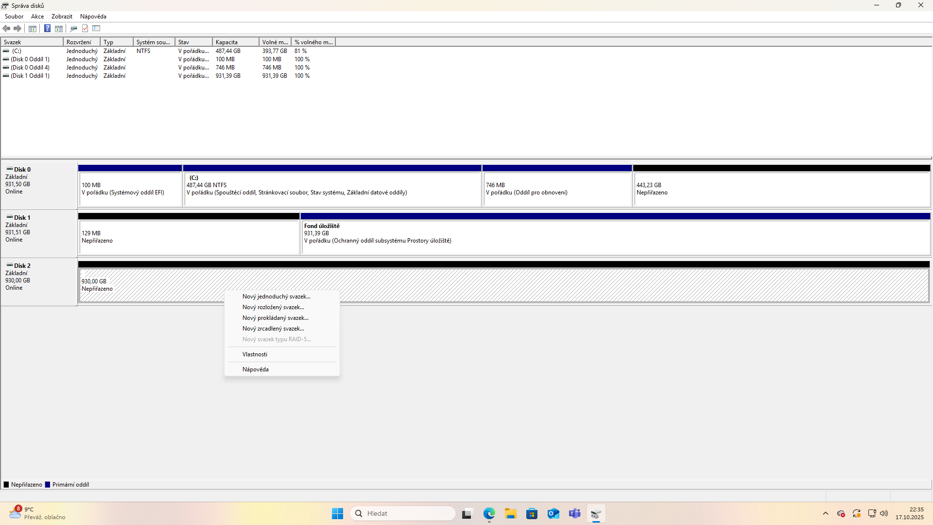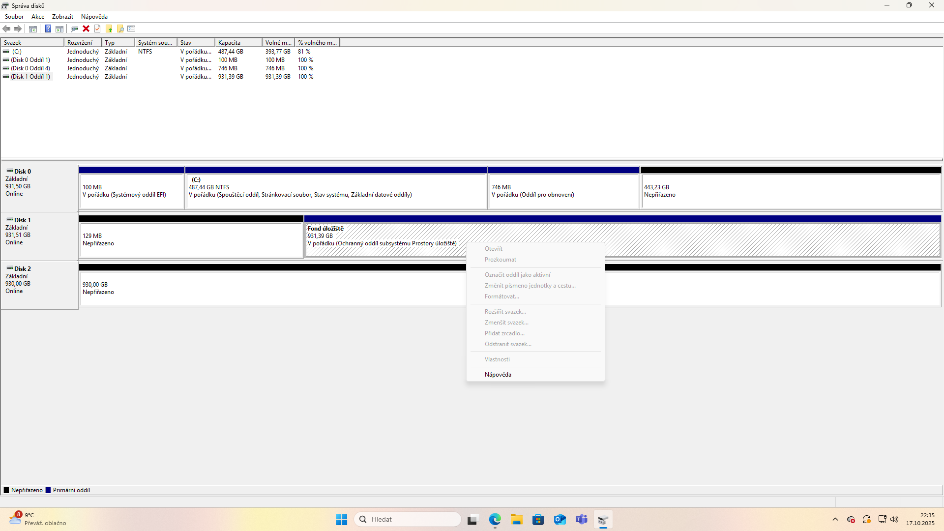 ale tam je že disk je online ale je u nej fond uložiště a v průzkumníku ho nevidím