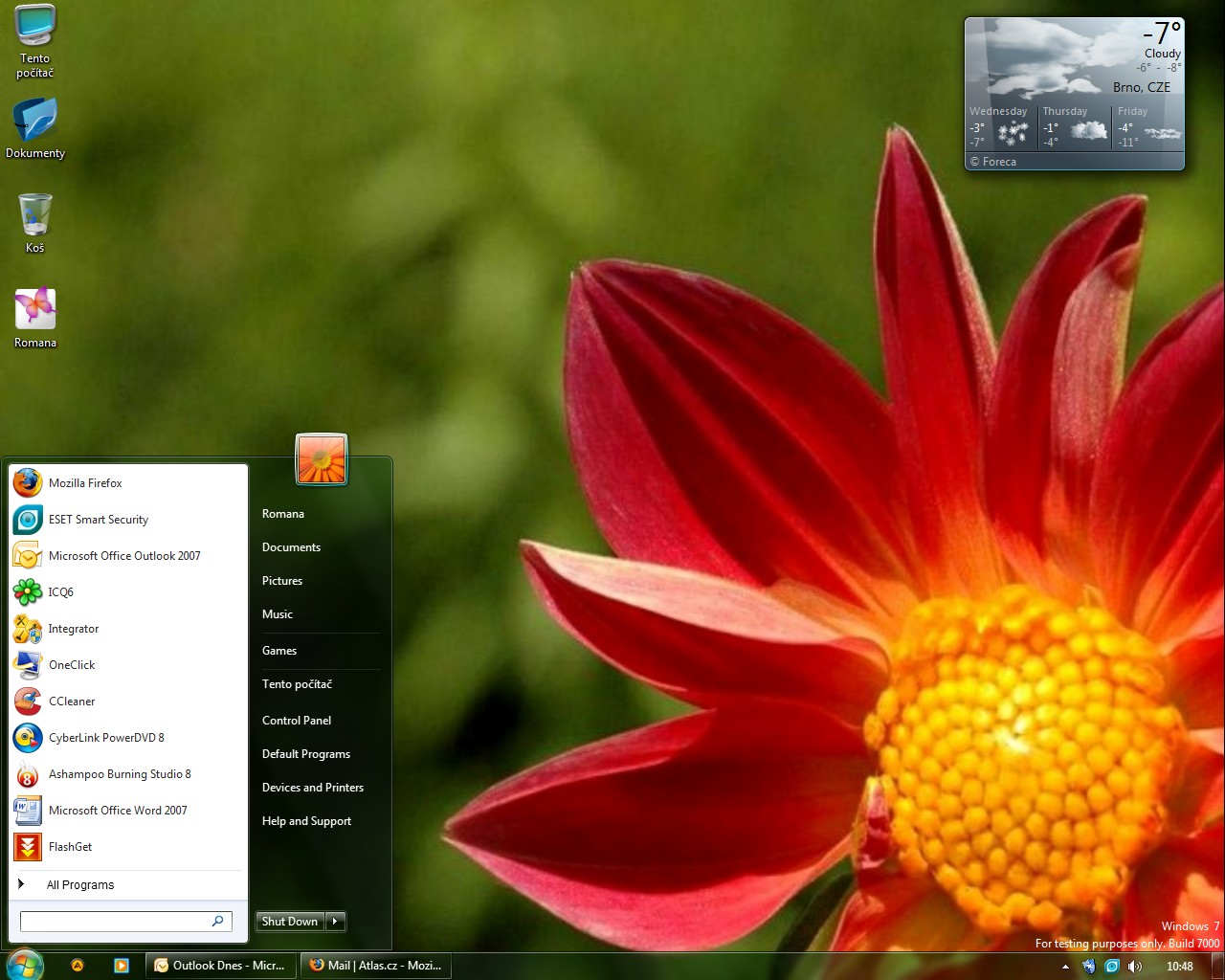 Moje závislost na stejných věcech (nemám ráda změnu). Takže W7 a WinXP si jsou "trošku" podobný
