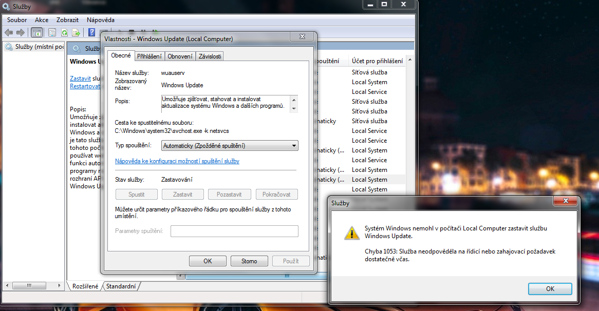 tak bohužel, nejde to zastavit, napsalo mě to tuhle chybu, když jsem rozklikl WinUpdate a dal zastavit... fakt nevím co dělat