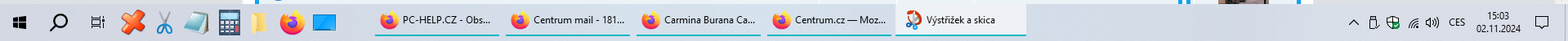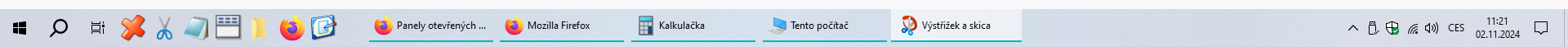 Panely otevřených programů na hlavním panelu