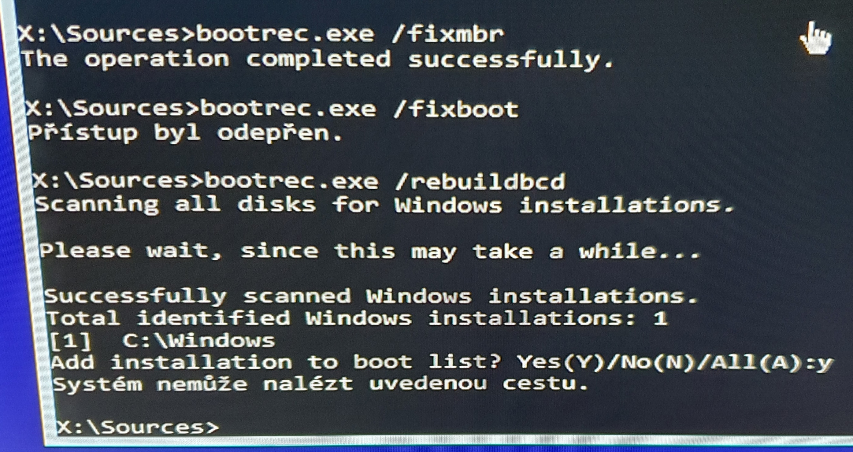 Nasel jsem prave ze rebuildbcd pres cmd obcas pomuze, ale me ne